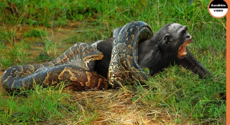 The powerful python wrapped its body tightly around the monkey, cutting off breath and movement. The struggle was short. Nature showed no mercy.